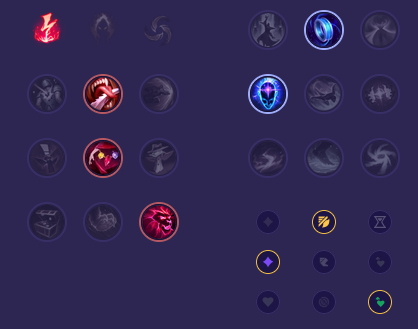 Starter: Pierścień Dorana 2x Mikstura Zdrowia Core Bulid: Złowrogość Buty Maga Płomień Cienia Full Bulid: Zabójczy Kapelusz Rabadona Klepsydra Zhonyi Kostur Pustki