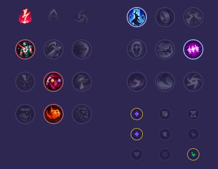 Starter: Pierścień Dorana 2x Mikstura Zdrowia Core Bulid: Złowrogość Buty Maga Przepływ Burzy Full Bulid: Płomień Cienia Zabójczy Kapelusz Rabadona Klepsydra Zhonyi
