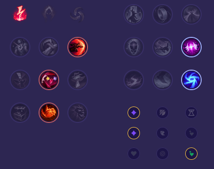 Starter: 🔵 Pisklę Podmuszka 1x Mikstura Zdrowia Core Bulid: Zmora Licza Buty Maga Zabójczy Kapelusz Rabadona Full Bulid: Kostur Pustki Banshee's Veil Płomień Cienia